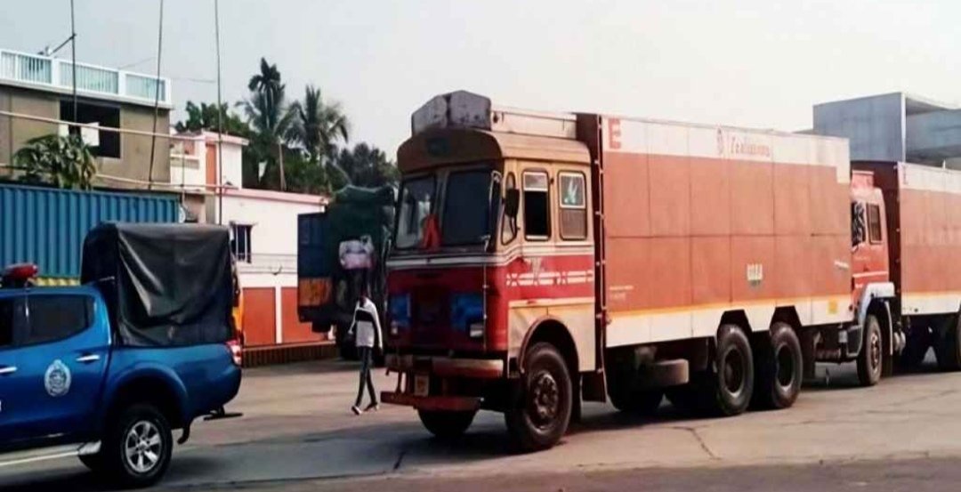 শনিবার (২৪ জানুয়ারি) বিকেলে ভারতের পেট্রাপোল স্থলবন্দর হয়ে ৮টি ট্রাকে করে বিপুল পরিমাণ বিস্ফোরক বেনাপোল স্থলবন্দরে প্রবেশ করে।  ছবি: সংগৃহীত